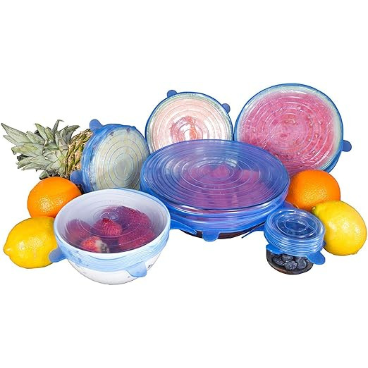 - Múltiples Usos: Con 6 tamaños diferentes, estas tapas son ideales para sellar y conservar alimentos en una amplia gama de recipientes como cuencos, tazas, frascos, botellas, ollas, etc. También son útiles para cubrir o conservar frutas cortadas como sandía, limón, etc.