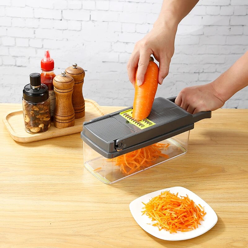 Multifuncional 14 en 1: Permite cortar, rallar y picar en múltiples estilos, adaptándose a cualquier receta.